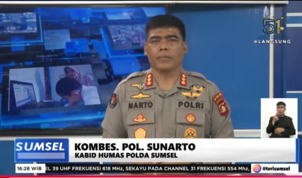 corruptionnews.my.id | Palembang: Kabid Humas Polda Sumsel Kombes Pol Sunarto berkesempatan menjadi pembawa berita di TVRI Sumsel. Kegiatan ini dilakukan di studio TVRI Sumsel, Palembang, Sumatera Selatan, Selasa (28/1/2025) sore