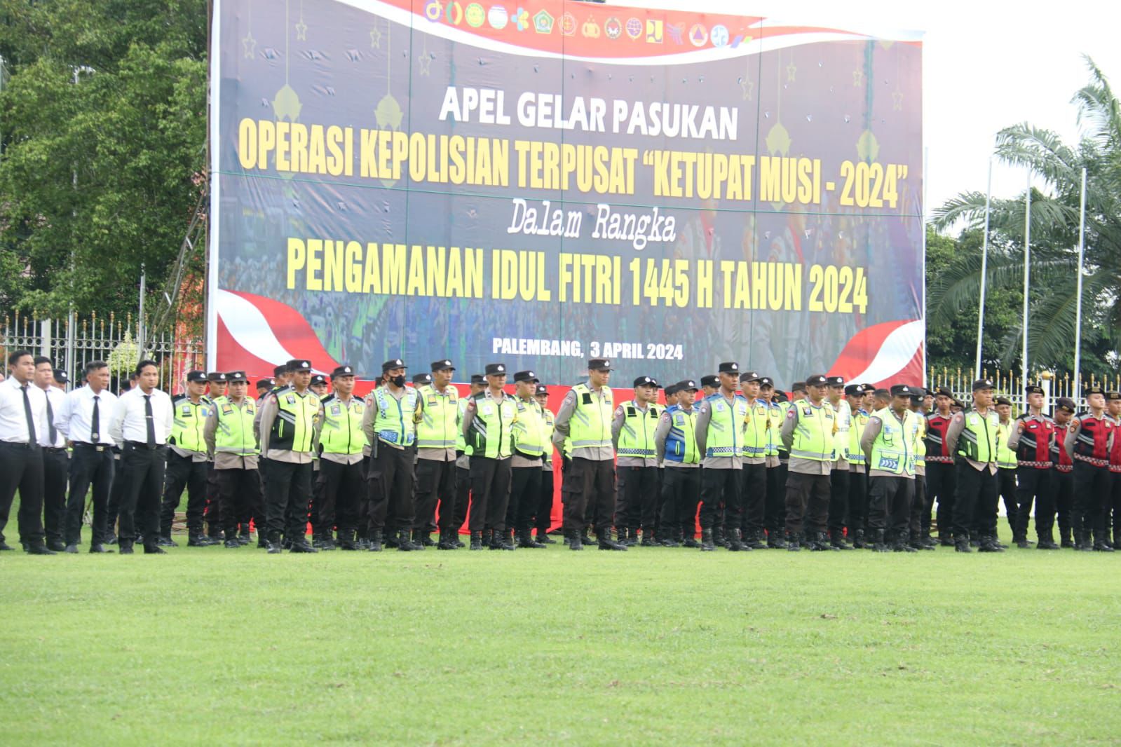 corruptionnews.my.id | PALEMBANG – Usai memimpin rapat koordinasi lintas sektoral pengamanan lebaran, Kapolda Sumsel Irjen A Rachmad Wibowo memimpin apel gelar pasukan personel pengamanan operasi Ketupat Musi 2024, pengamanan mudik lebaran 1445 H, dihalaman Griya Agung Palembang Rabu (3/4/2024).