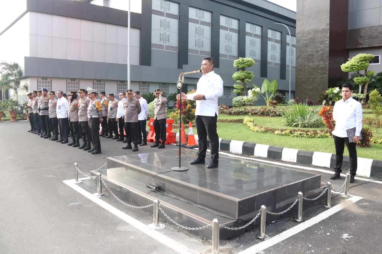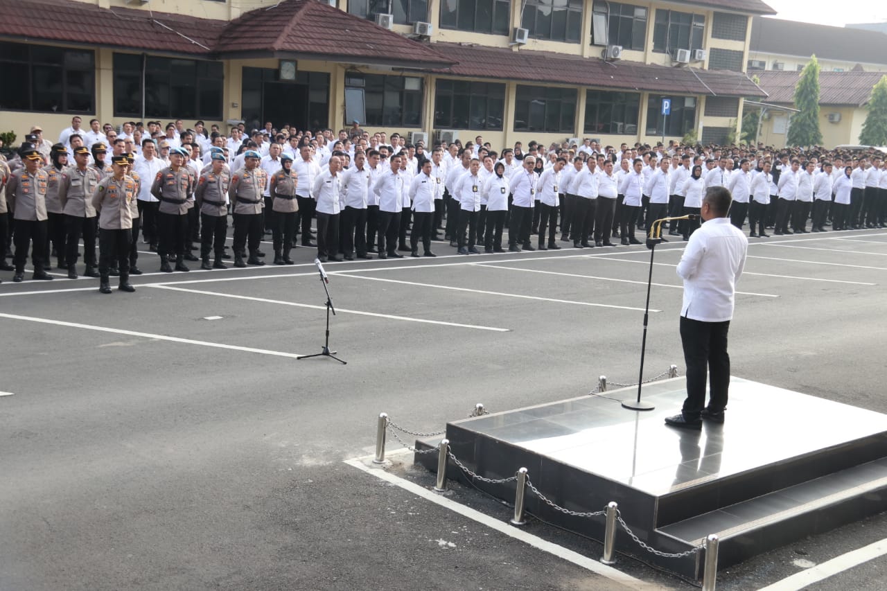 corruptionnews.my.id | Palembang – Dirreskrimsus Polda Sumsel Kombes Pol Bagus Suropratomo Oktobrianto pimpin Apel pagi dilapangan Mapolda Sumsel Jalan Jenderal Sudirman KM 4 Palembang Senin 29Januari 2024