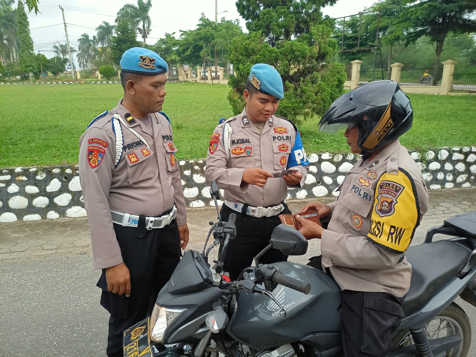 Selain itu juga dalam kesempatan yang sama anggota provost dan Paminal polres Ogan Ilir melakukan pemeriksaan terhadap penampilan dan sikap tampan anggota polres Ogan Ilir dan yang tak kalah penting juga dilakukan pemeriksaan kelengkapan surat surat kendaraan STNK dan Kartu SIM serta kelengkapan komponen pendukung lainnya bagi pemilik kendaraan baik sepeda motor ataupun kendaraan jenis mobil pribadi.